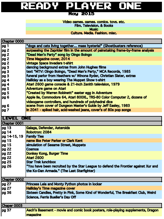 Ms. Backs shared with us a portion of her page-by-page evaluation of the Ready Player One book for every reference and use of potentially copyrightable material within. This was then used to see what references that the director and writers want to keep in the film, and then to obtain the necessary licenses.